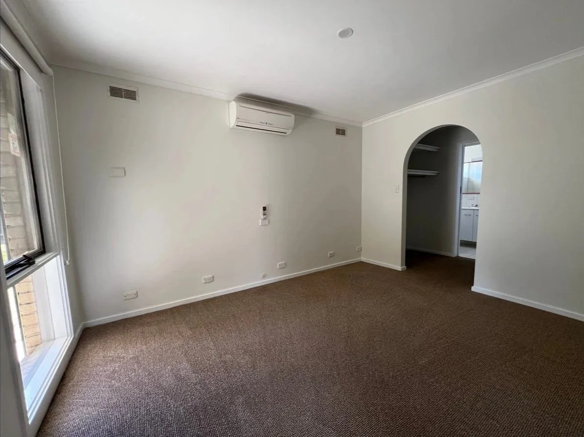 The master bedroom offers a walk-in robe, split system, and private ensuite, creating your own peaceful retreat. Down the hallway are three additional bedrooms — two with built-in robes — along with a central bathroom, second toilet, and a well-equipped laundry for added convenience.